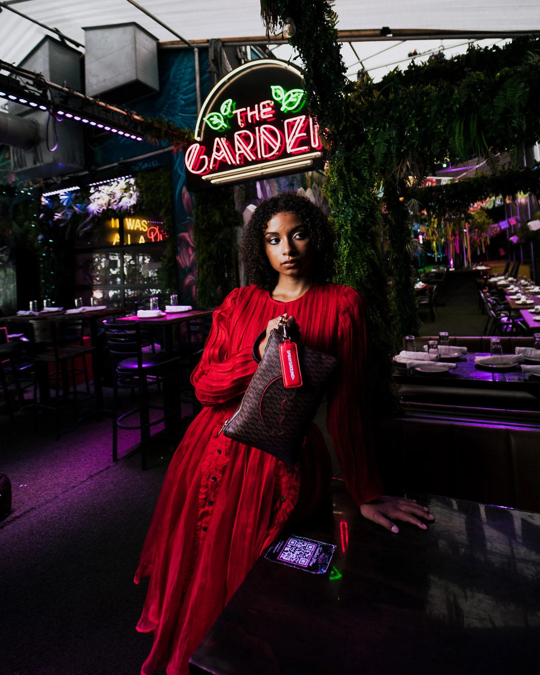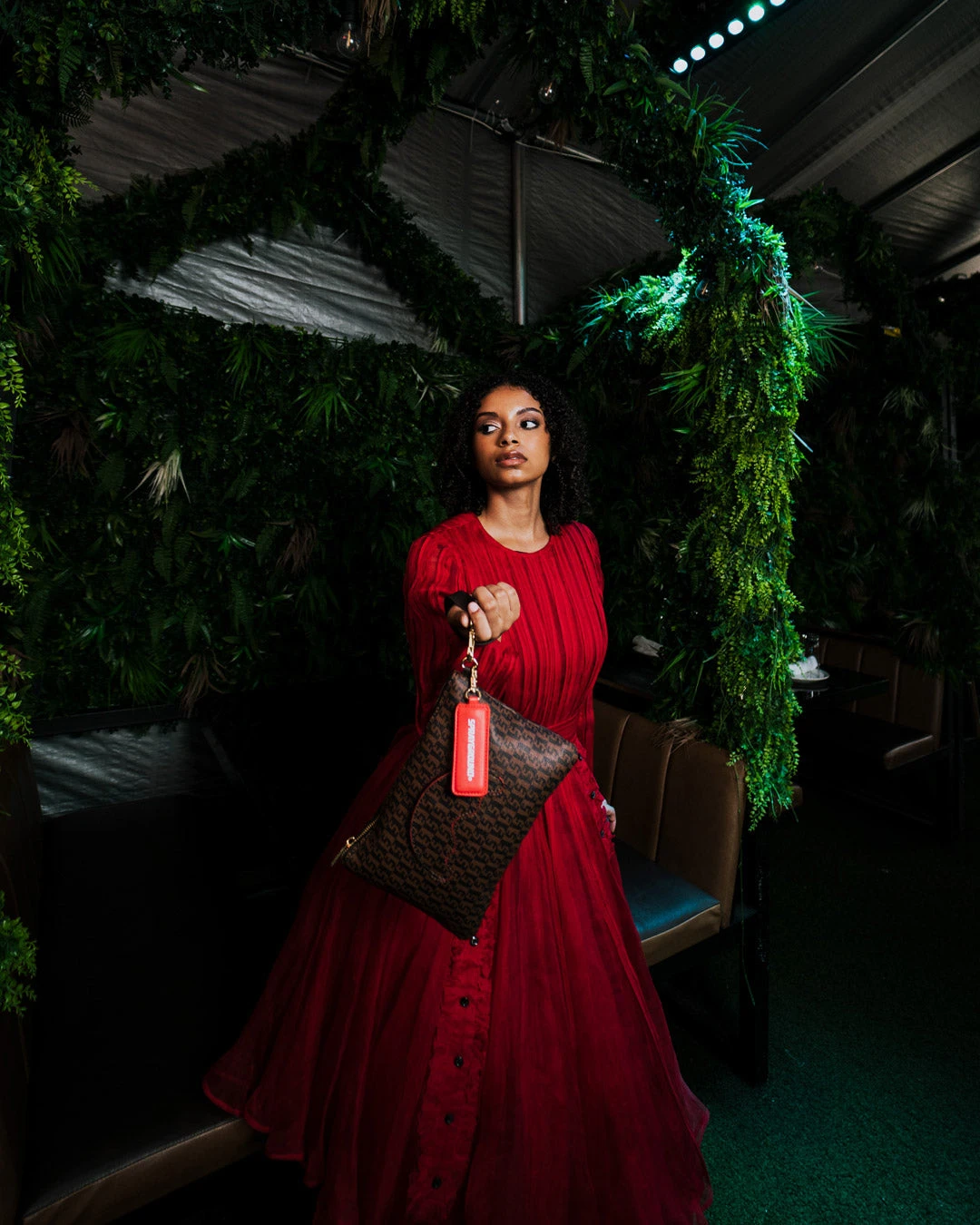 Pouch with removable wristlet strap, Handle on front panel, Zip Closure, secret stash pocket on side seam
