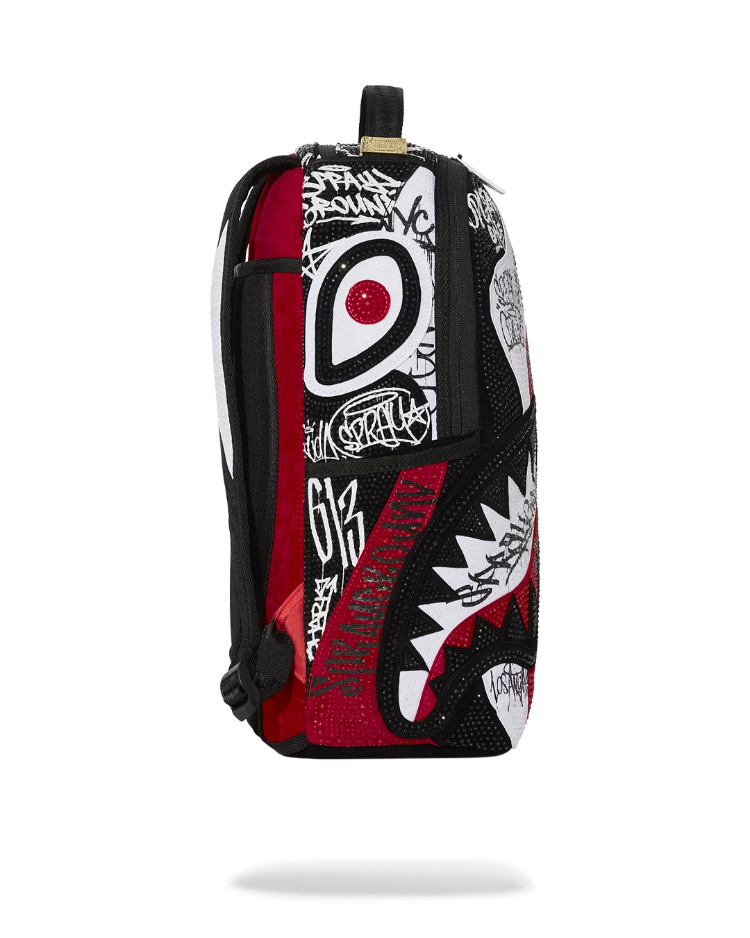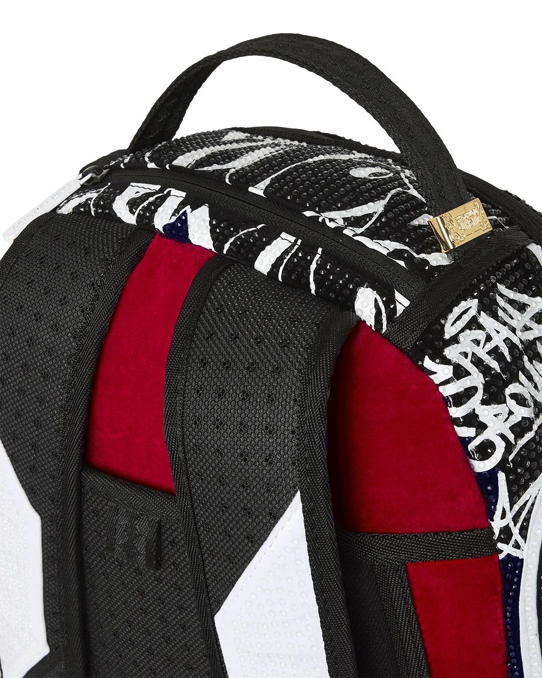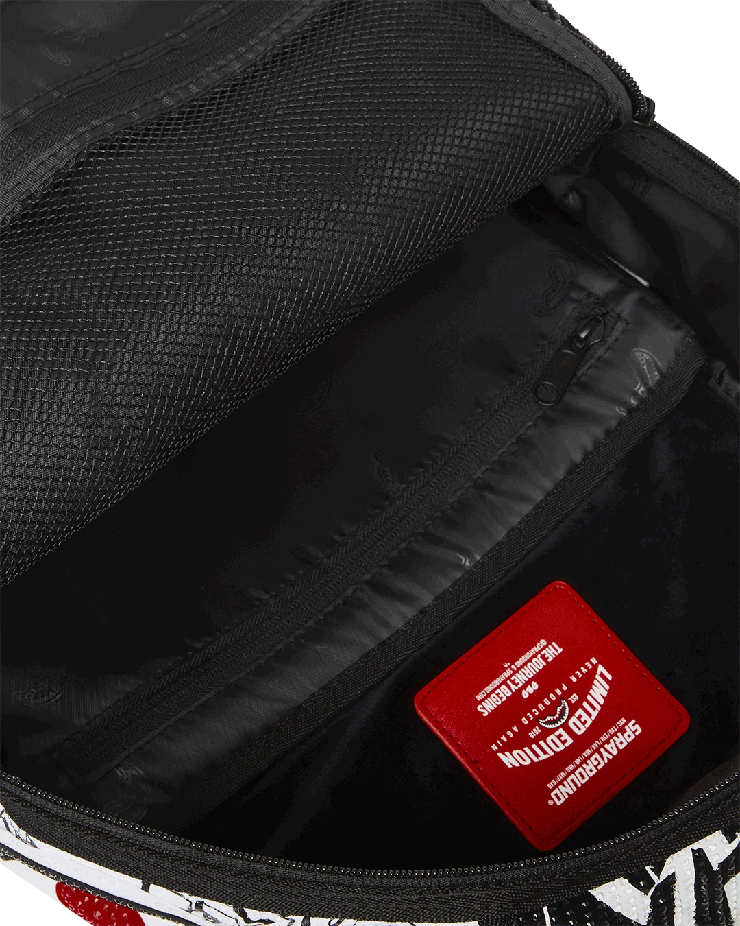 Dimensions: 18″ x 6″ x 11.5″ • Front zipper pocket • Side pockets • Zippered Stash pocket • Separate velour sunglass compartment • Ergonomic mesh back padding • Adjustable Straps for custom sizing • Gold zippers with metal hardware • Metal “Sprayground Authentic” badge • Slide through back sleeve connects to carry-on luggage to free your hands