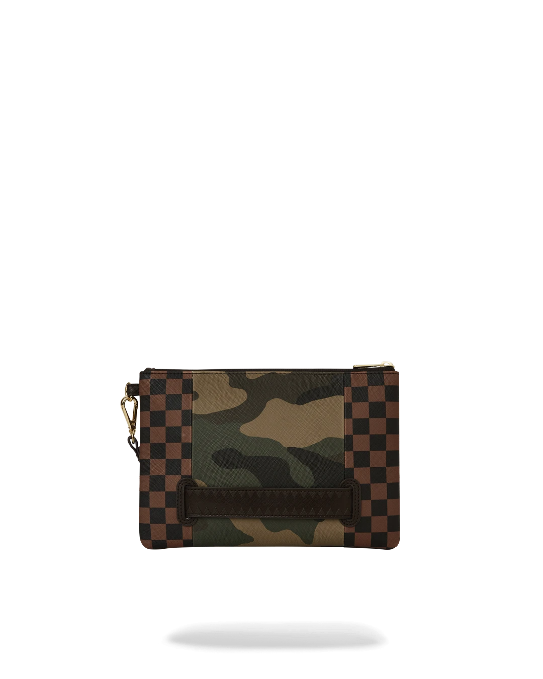 Pouch with removable wristlet strap, Handle on front panel, Zip Closure, secret stash pocket on side seam