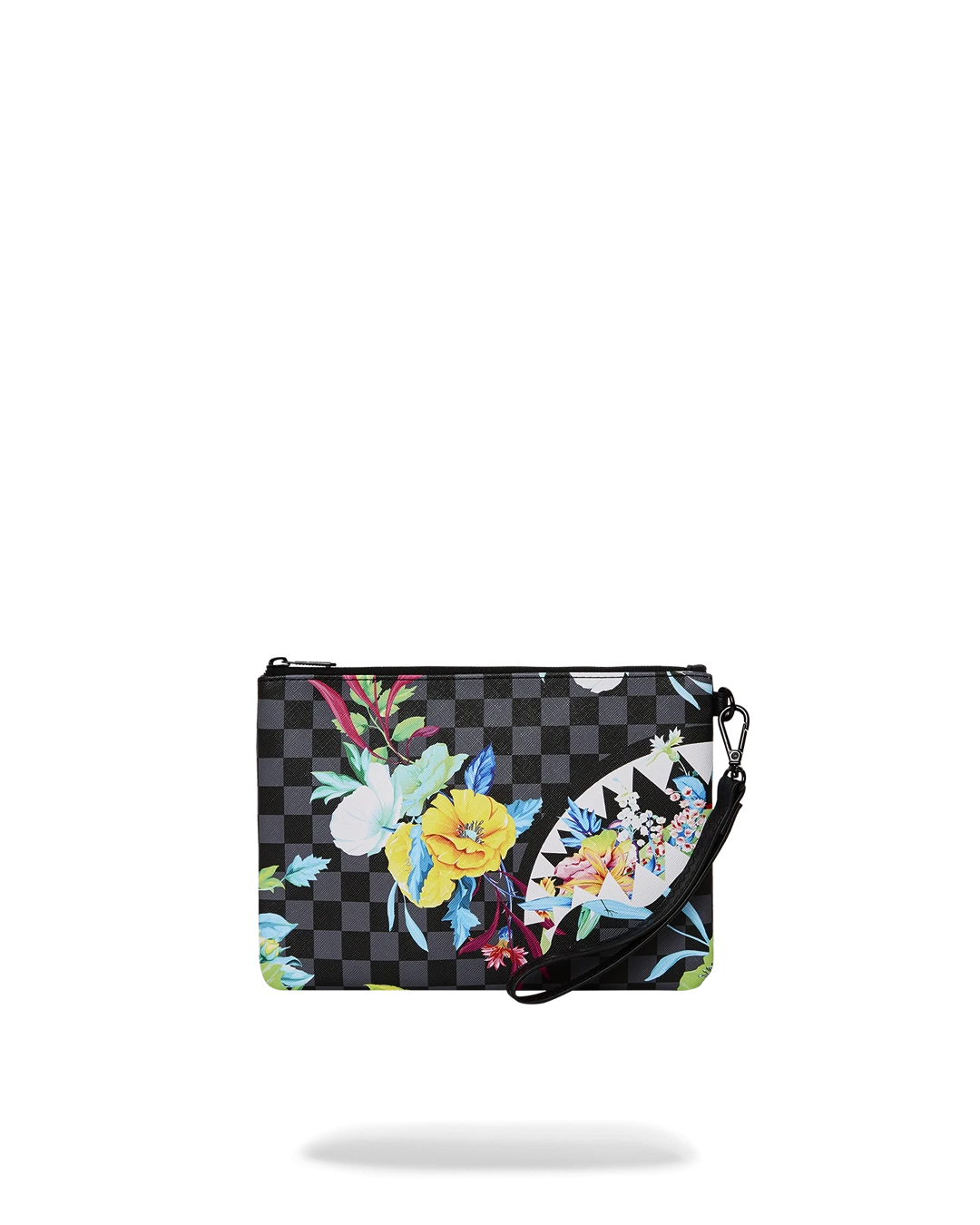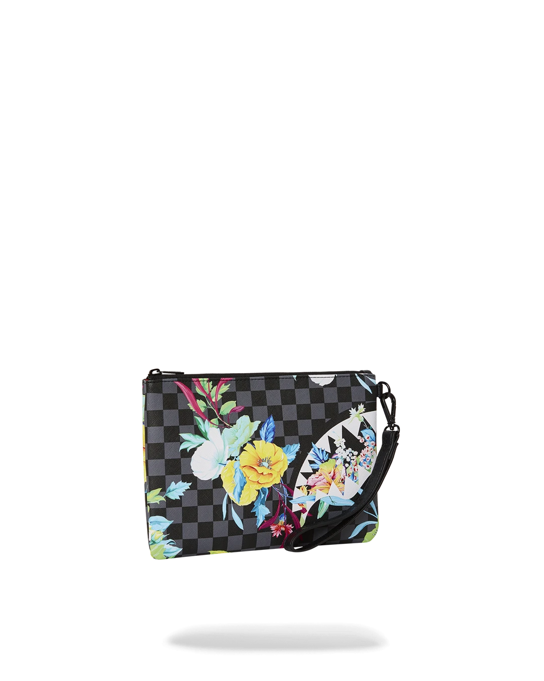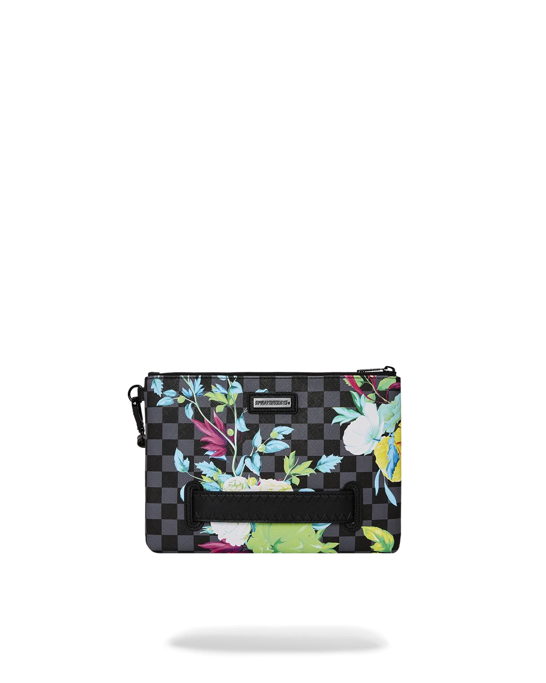 Pouch with removable wristlet strap, Handle on front panel, Zip Closure, secret stash pocket on side seam
