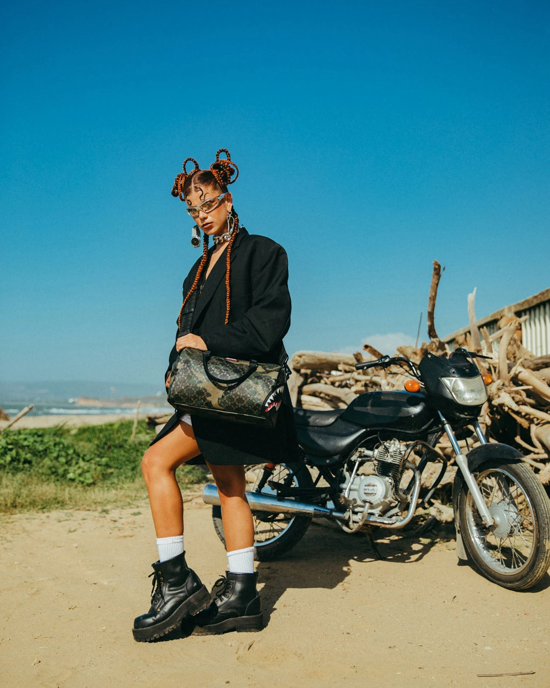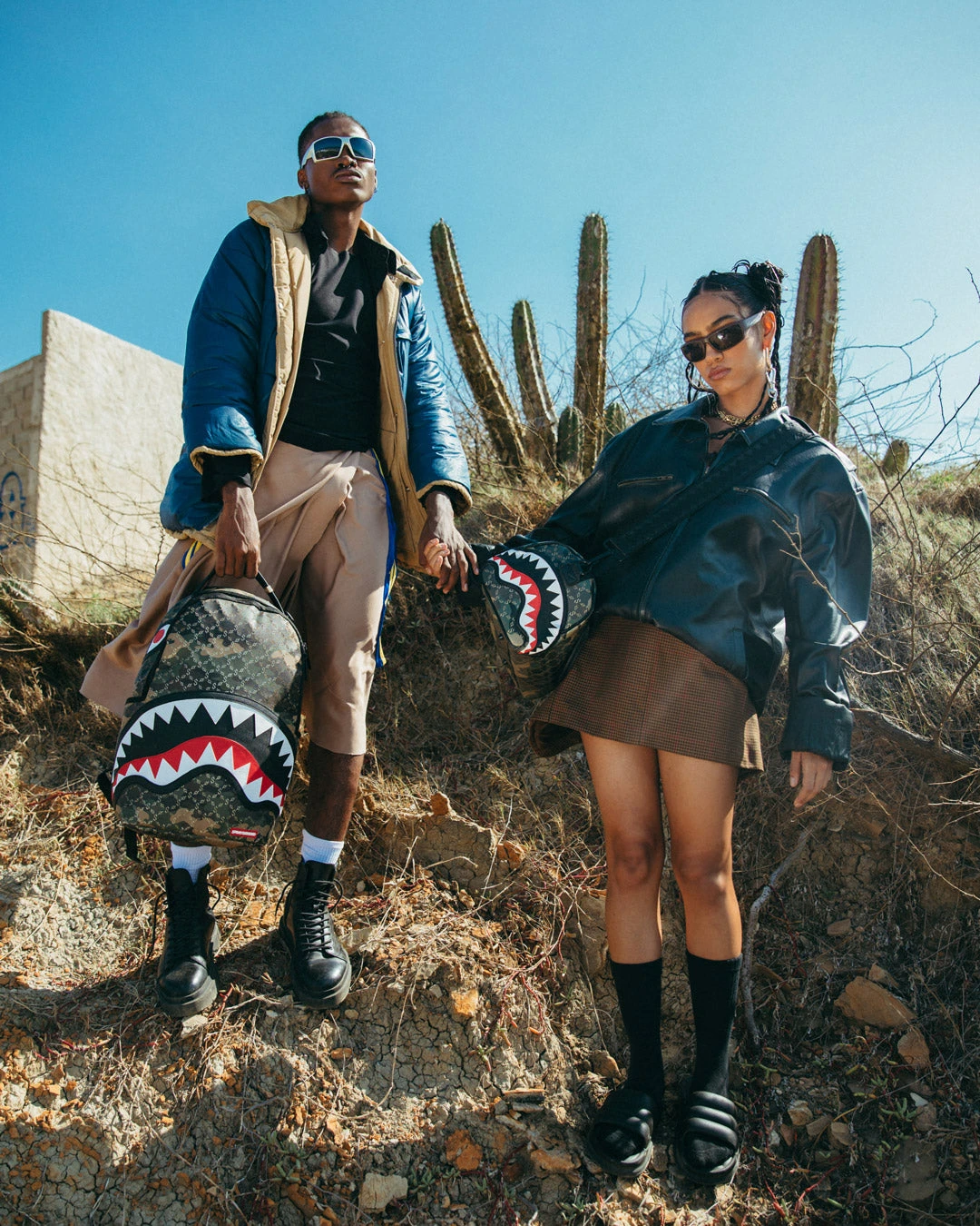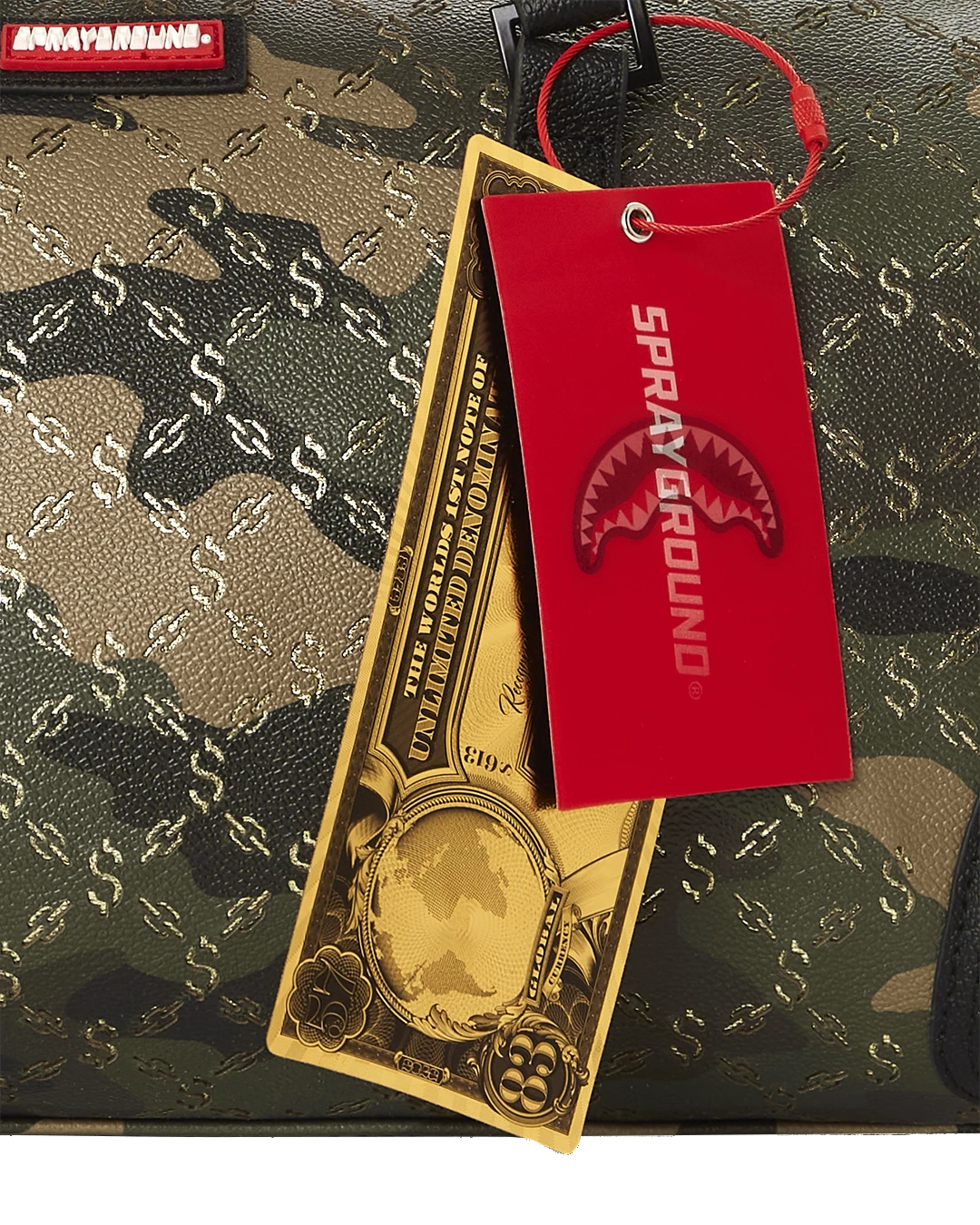 Dimensions: 8″ x 7.5″ x 13″ • Metal zipper pocket• Back Zippers •Zippered sneaker pocket • gold zippers • Adjustable Straps for custom sizing •Metal Zippers with Metal Hardware • bag of Sprayground money