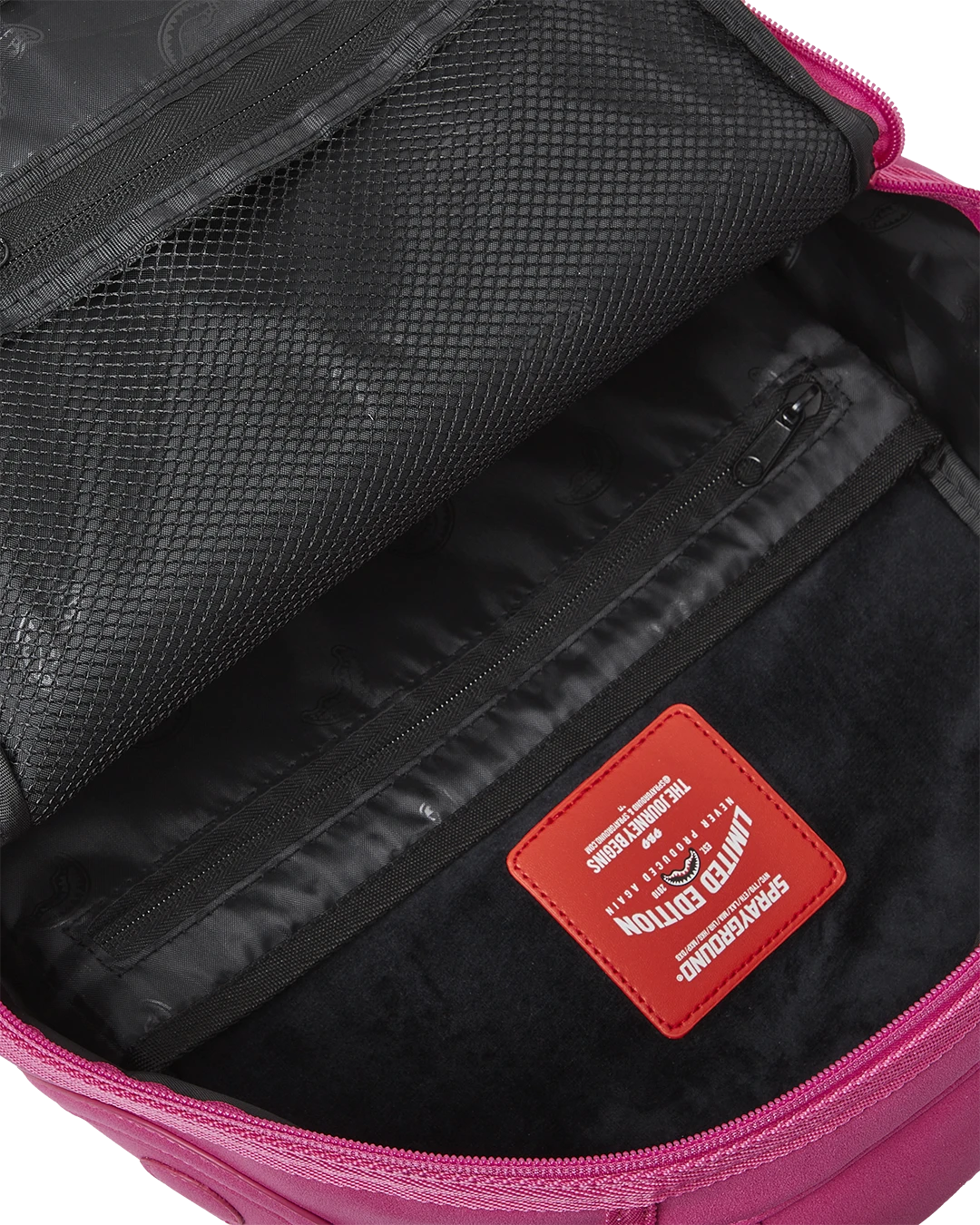 Dimensions: 18″ x 6″ x 11.5″ • Front zipper pocket • Side pockets • Zippered Stash pocket • Separate velour sunglass compartment • Ergonomic mesh back padding • Adjustable Straps for custom sizing • Gold zippers with metal hardware • Metal “Sprayground Authentic” badge • Slide through back sleeve connects to carry-on luggage to free your hands