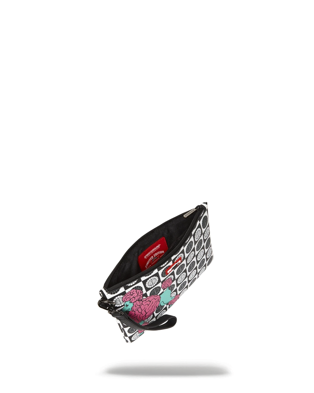 Pouch with removable wristlet strap, Handle on front panel, Zip Closure, secret stash pocket on side seam