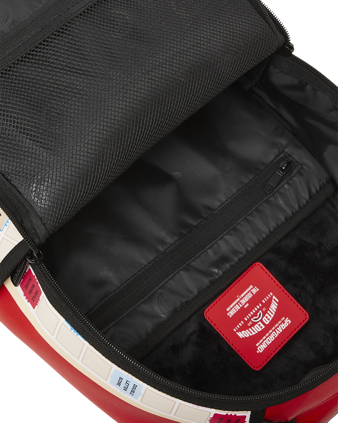 Dimensions: 18″ x 6″ x 11.5″ • Front zipper pocket • Side pockets • Zippered Stash pocket • Separate velour sunglass compartment • Ergonomic mesh back padding • Adjustable Straps for custom sizing • Gold zippers with metal hardware • Metal “Sprayground Authentic” badge • Slide through back sleeve connects to carry-on luggage to free your hands