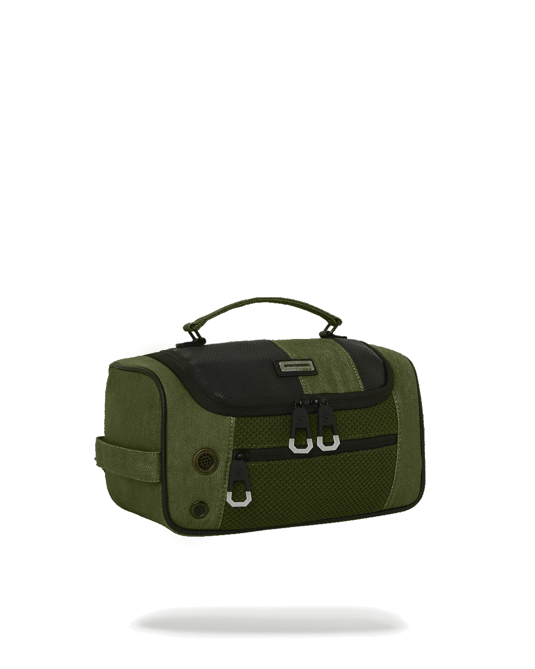 Dimensions: 10″ x 3.25″ x 8″ • Two zippered compartments • Side handle • Gunmetal zippers with metal hardware