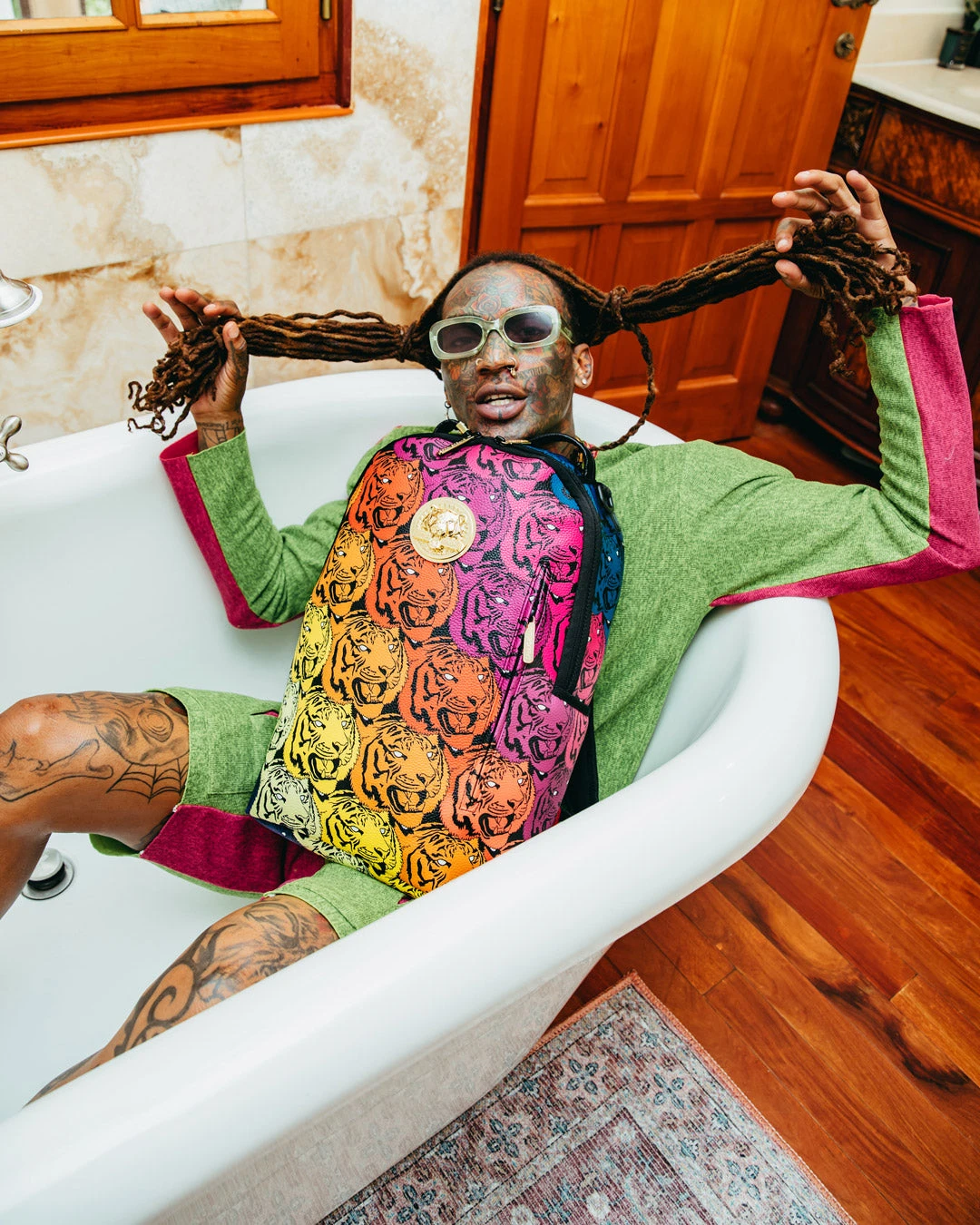 Dimensions: 18″ x 6″ x 11.5″ • Front zipper pocket • Side pockets • Zippered Stash pocket • Separate velour sunglass compartment • Ergonomic mesh back padding • Adjustable Straps for custom sizing • Gold zippers with metal hardware • Metal “Sprayground Authentic” badge • Slide through back sleeve connects to carry-on luggage to free your hands