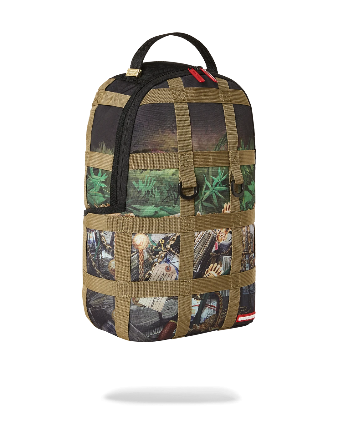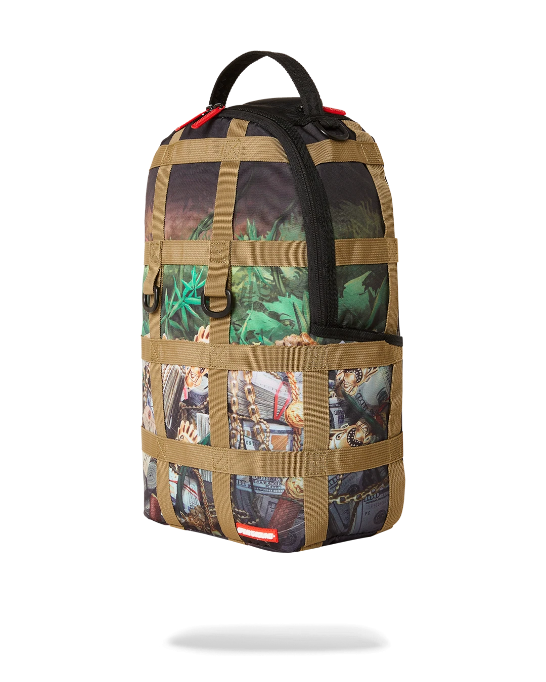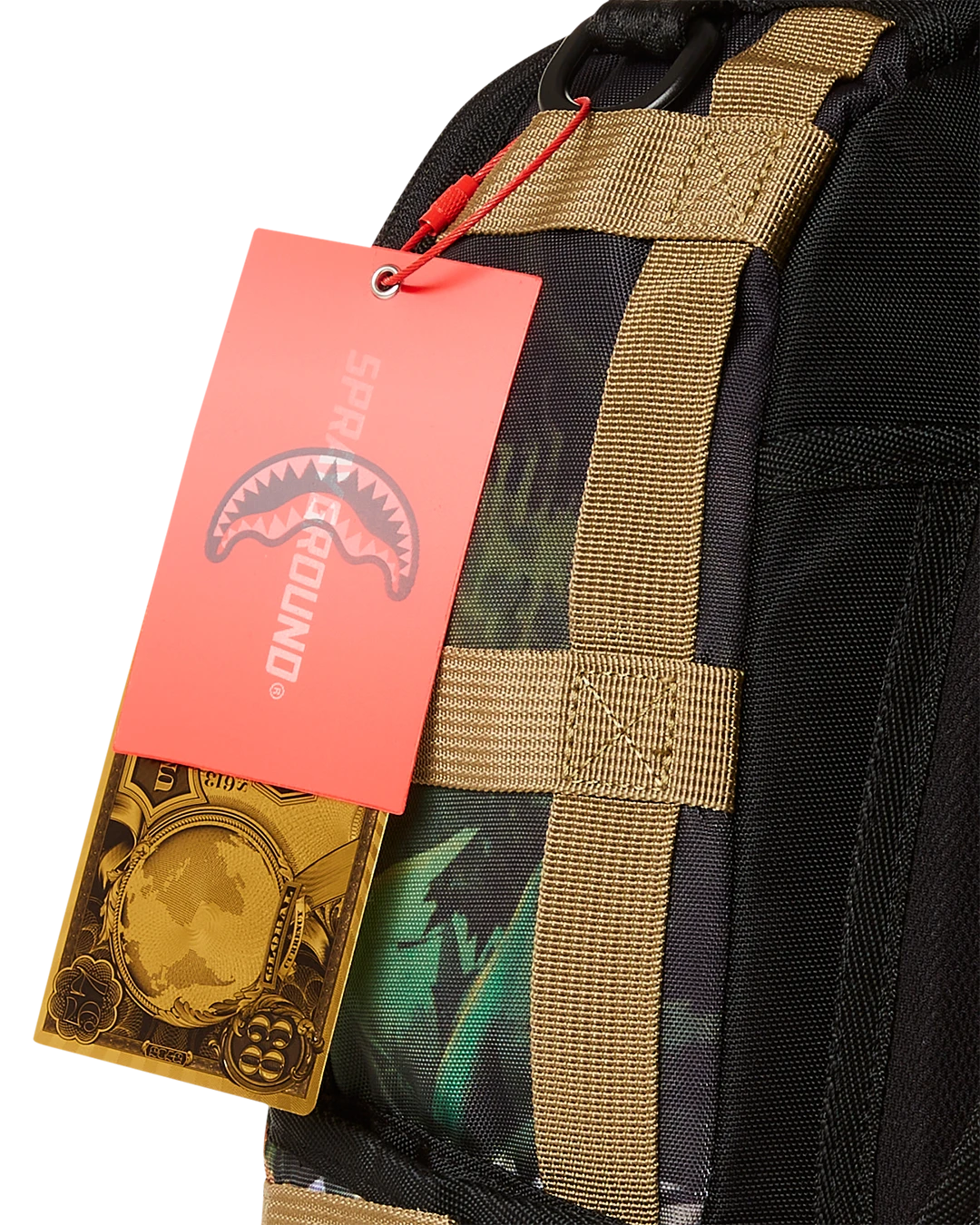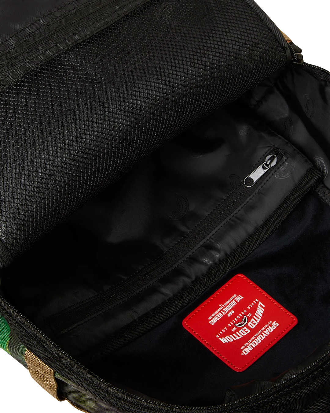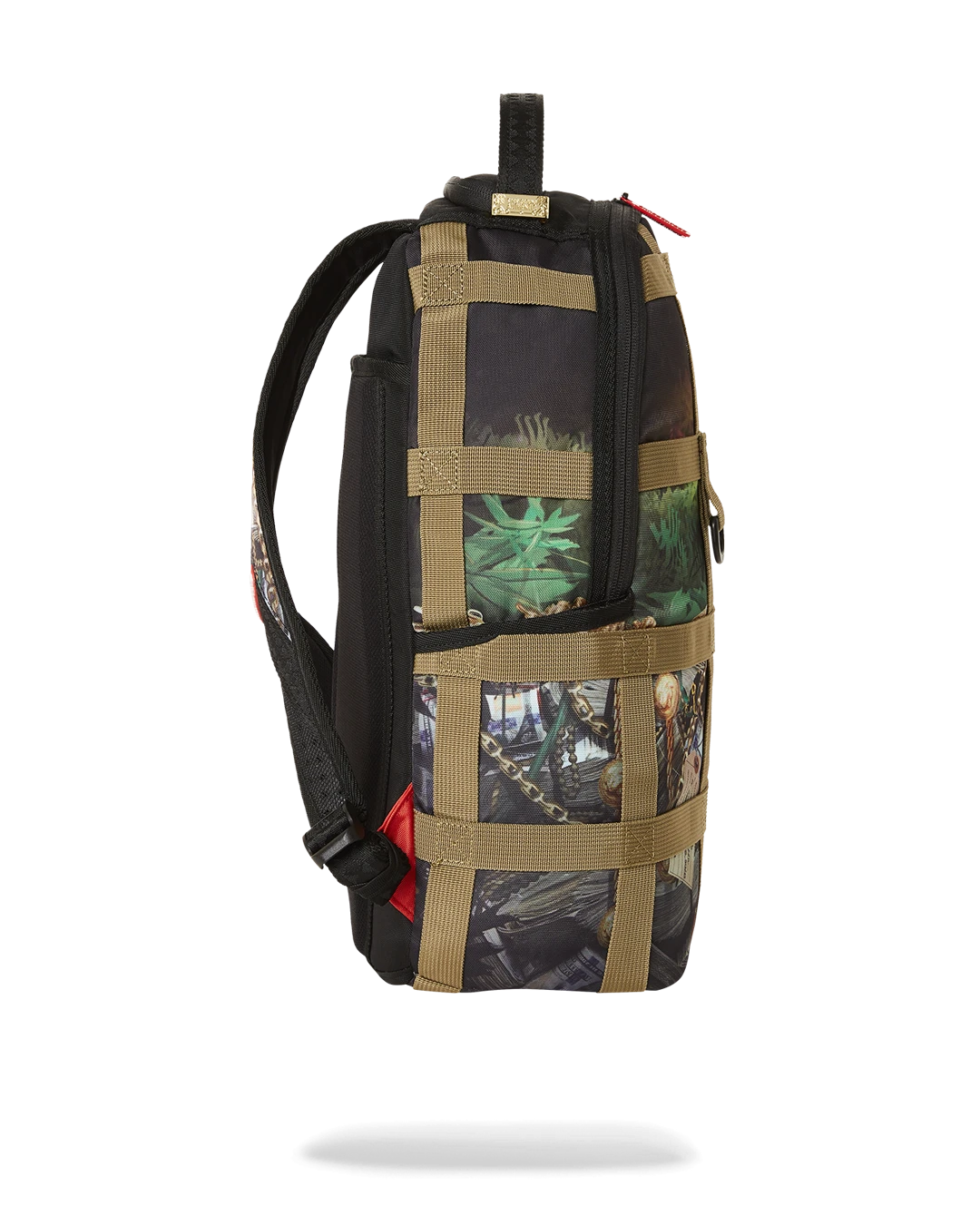 Dimensions: 18″ x 6″ x 11.5″ • Front zipper pocket • Side pockets • Zippered Stash pocket • Separate velour sunglass compartment • Ergonomic mesh back padding • Adjustable Straps for custom sizing • Gold zippers with metal hardware • Metal “Sprayground Authentic” badge • Slide through back sleeve connects to carry-on luggage to free your hands