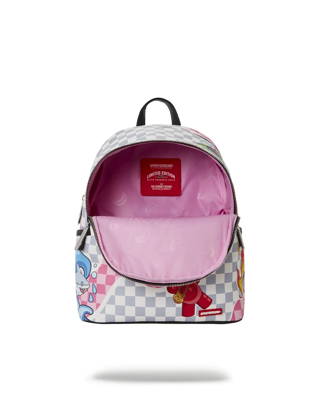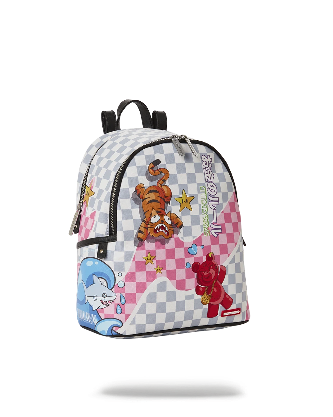 Dimensions: 10″ x 5″ x 11.5″ • Two large main zippered compartments • Side pockets • Zippered Stash pocket • Adjustable straps for custom sizing • Gold zippers with metal hardware